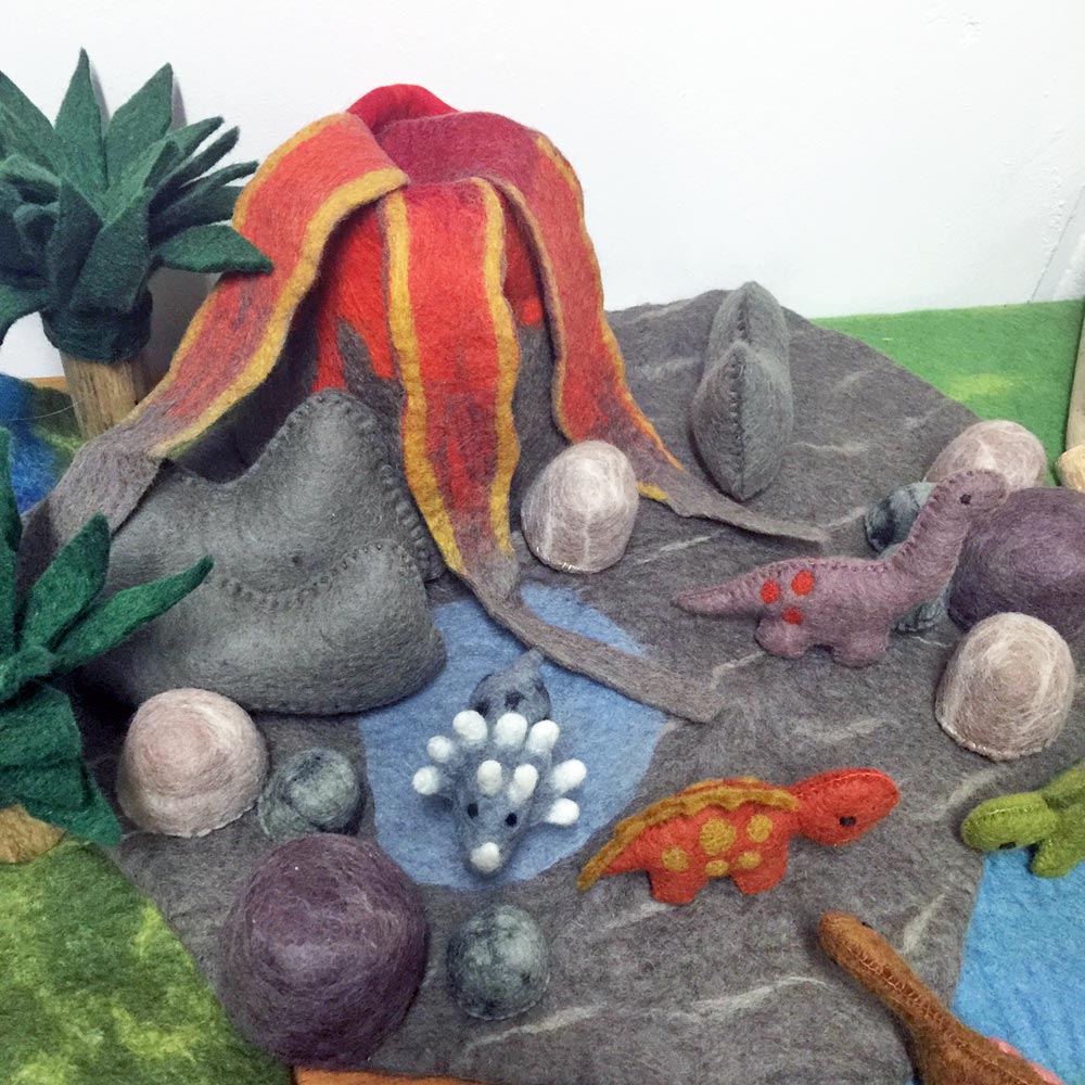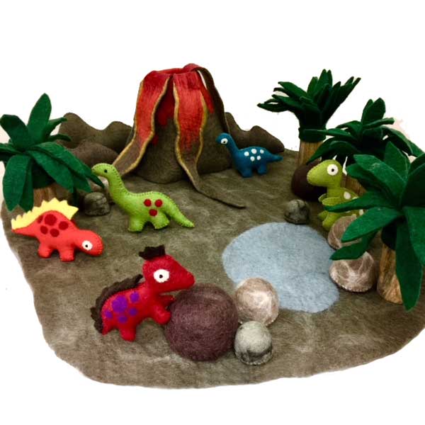 Create your own small world scene with Palm Trees, Dinosaurs, Flintstone Rocks, Lava Rocks, River Stream