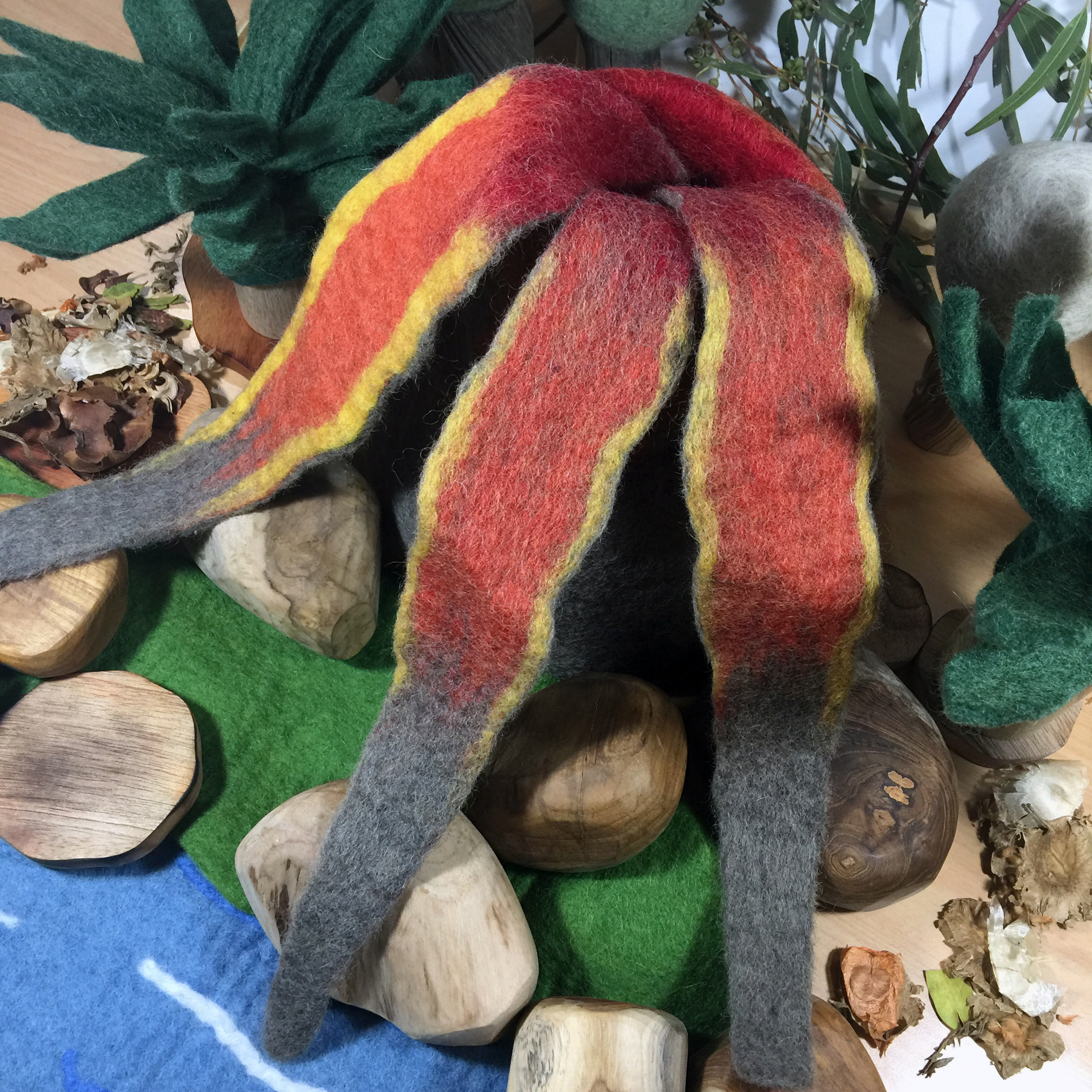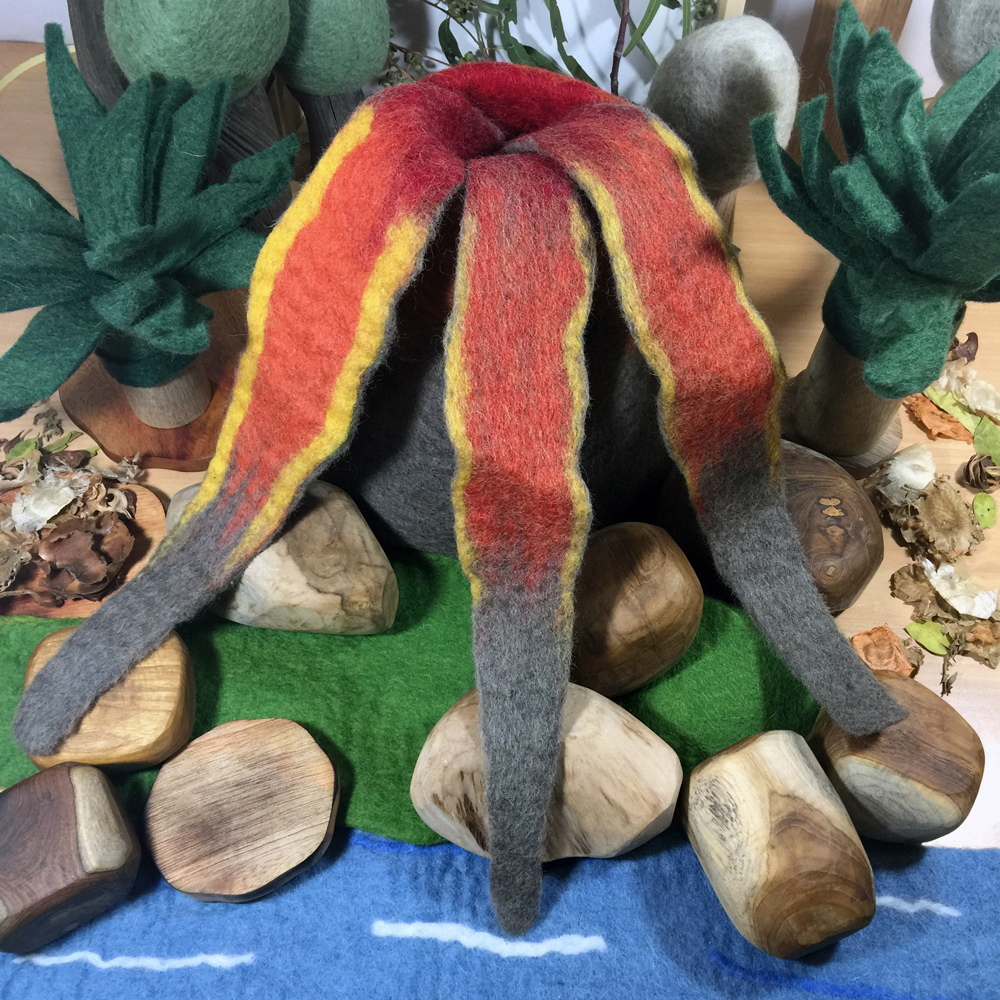 Beware the hot lava in this amazing 22cm tall volcano set with 3 separate lava streams