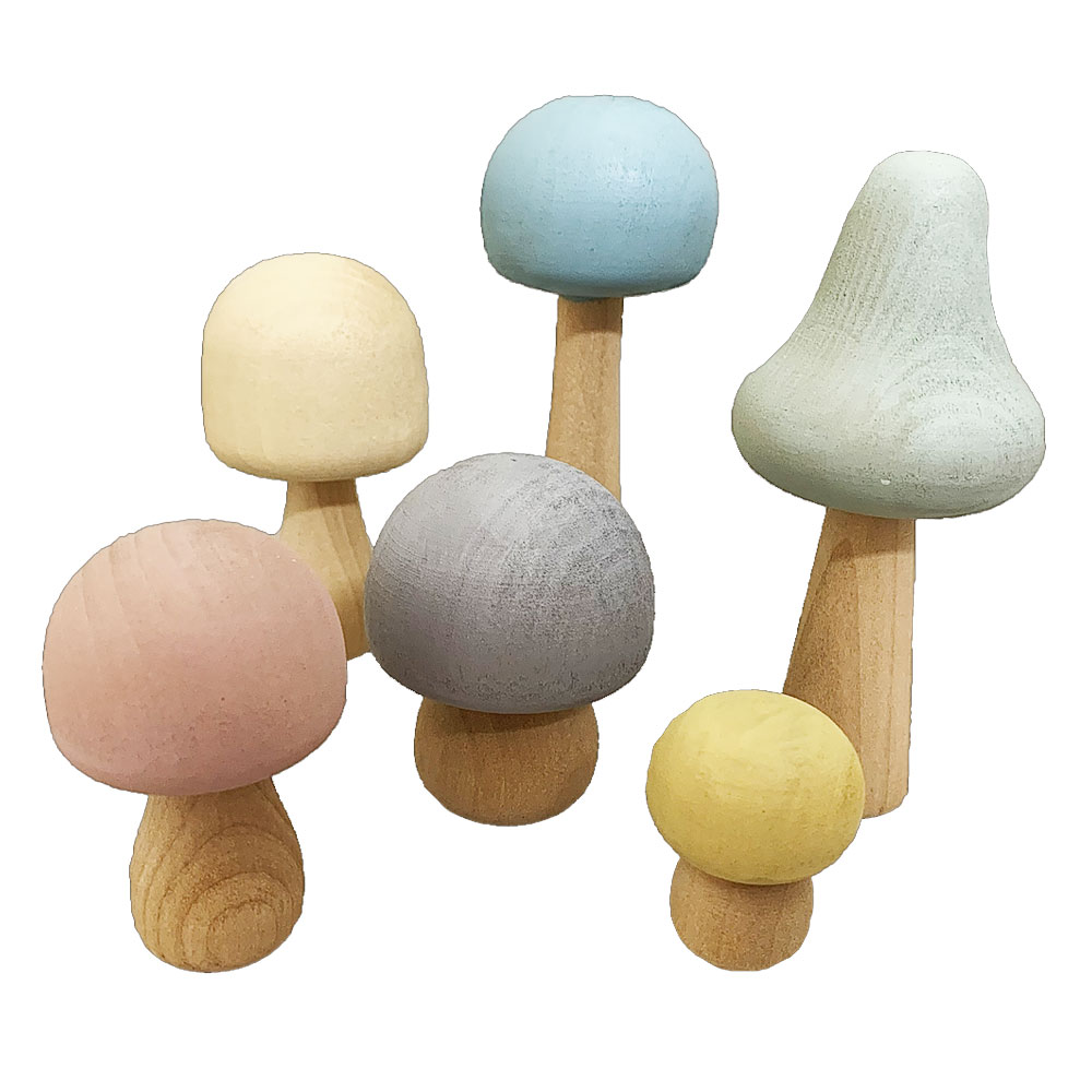 These pastel coloured mushrooms are a great addition to small world play environments. The tallest mushroom is approx 11.5cm tall with mushroom top approx 4.5cm width