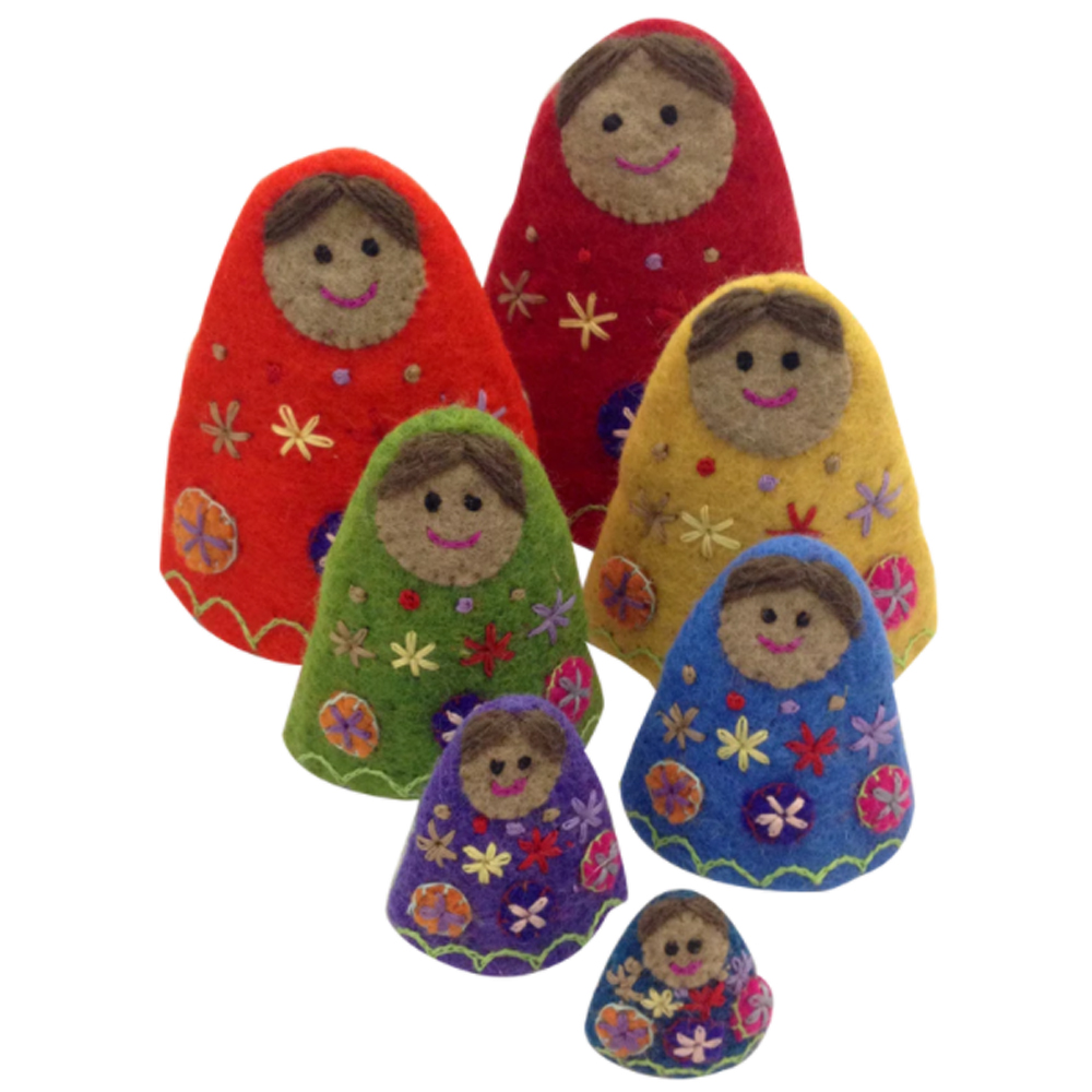 These adorable rainbow coloured nesting babushkas are embroidered with gorgeous detail