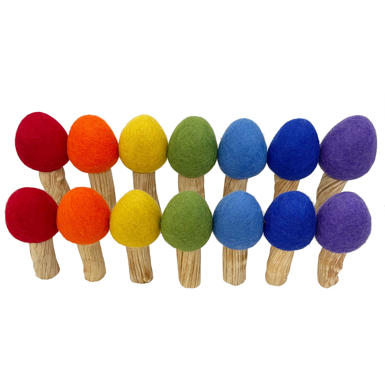 Rainbow Felt Trees 14 piece set by Papoose Toys