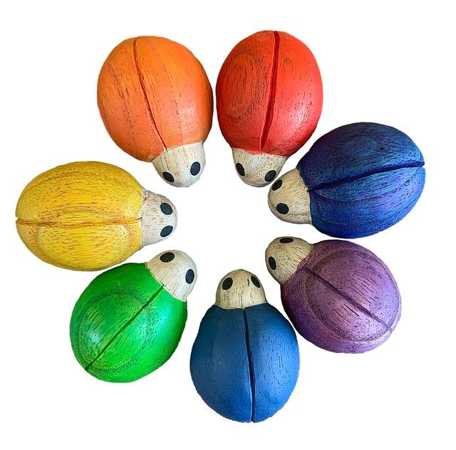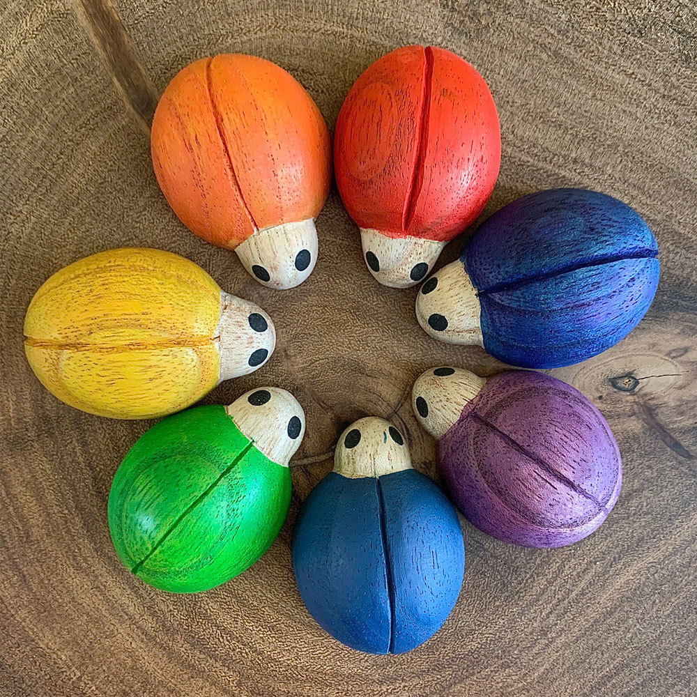 These wooden ladybirds are hand dyed in the seven colours of the rainbow range and make a wonderful addition to small world play.