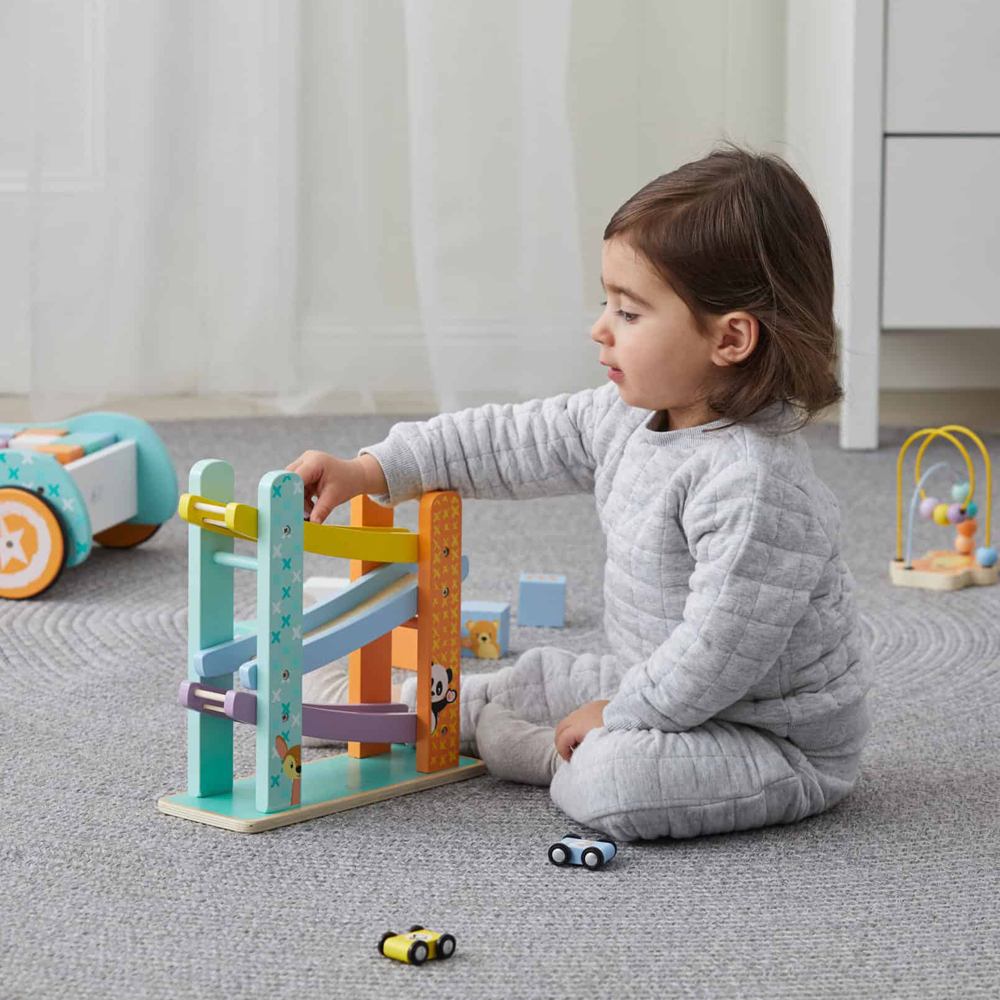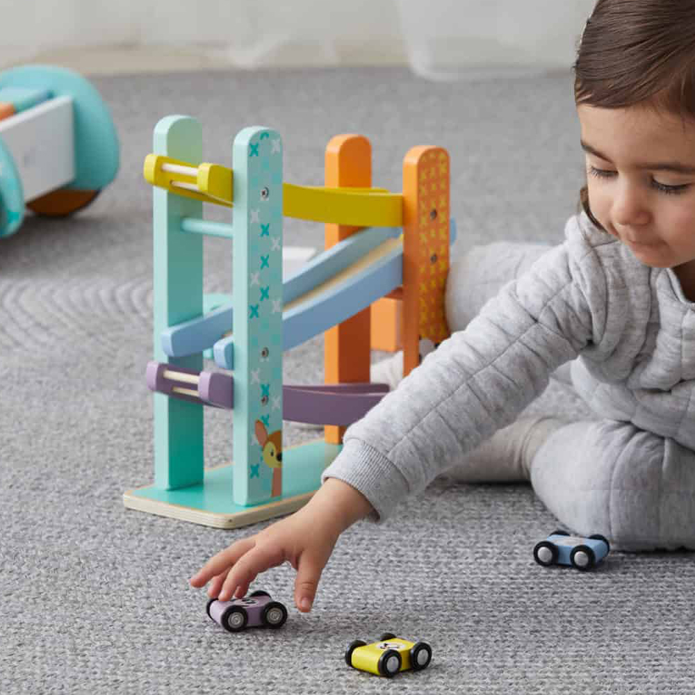 This Ramp Racer is a fun and exciting way for toddlers to develop cognitive skills and fine tune their hand-eye coordination by engaging in fascinating repeat motion play! Made from quality wood and finished in stunning eye-catching and colourful paint and patterns, little ones will be entertained for hours while developing fine motor skills and reinforcing their learning.
