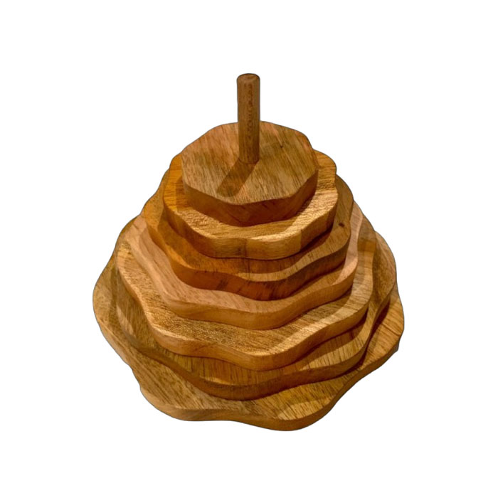 This wooden Ripple Stacker is made from natural wood and enhances fine motor skills, hand-eye coordination, and spatial awareness in children. The Ripple Stacker has a sturdy wooden base with 6 stacking discs. These toys encourage problem-solving, critical thinking, and creativity as kids explore stacking and balancing. The natural materials provide a sensory-rich experience, promoting a connection to nature and fostering mindful play.