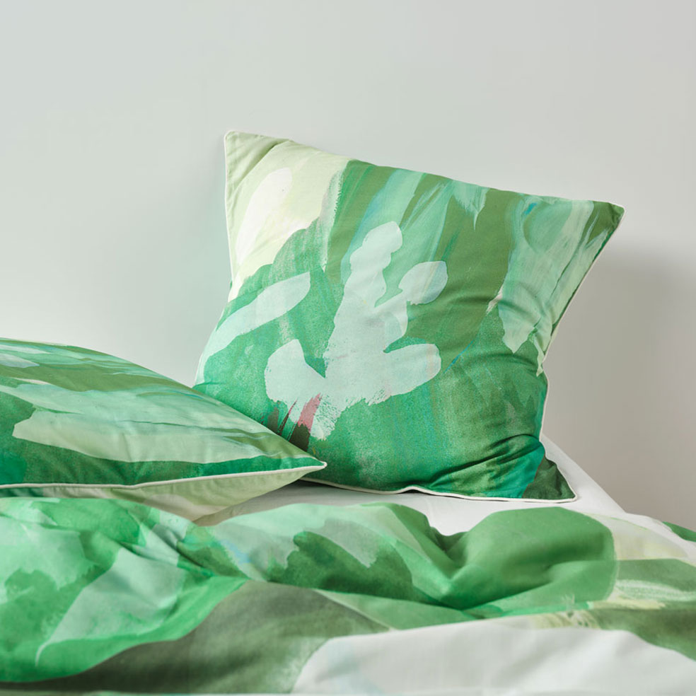 Designed to complement the Glinda quilt cover in Pesto green, this European pillowcase features the same hand-painted floral collage in a vibrant, abstract style. Crafted from smooth cotton sateen, it adds a refined, expressive layer to your bedding.