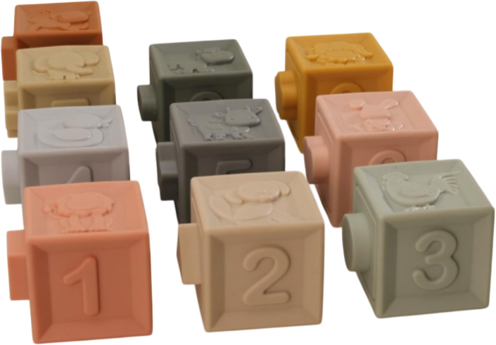 Designed with little hands and curious minds in mind, this 10-piece set of stackable cubes made from food grade silicone and features soft, earthy tones and a gentle matte finish that’s both calming and tactile. Each cube is embossed with a number from 0 to 9, paired with a charming animal illustration and a unique protruding shape that fits snugly into the matching hollow on another cube—perfect for early shape-matching and stacking play.