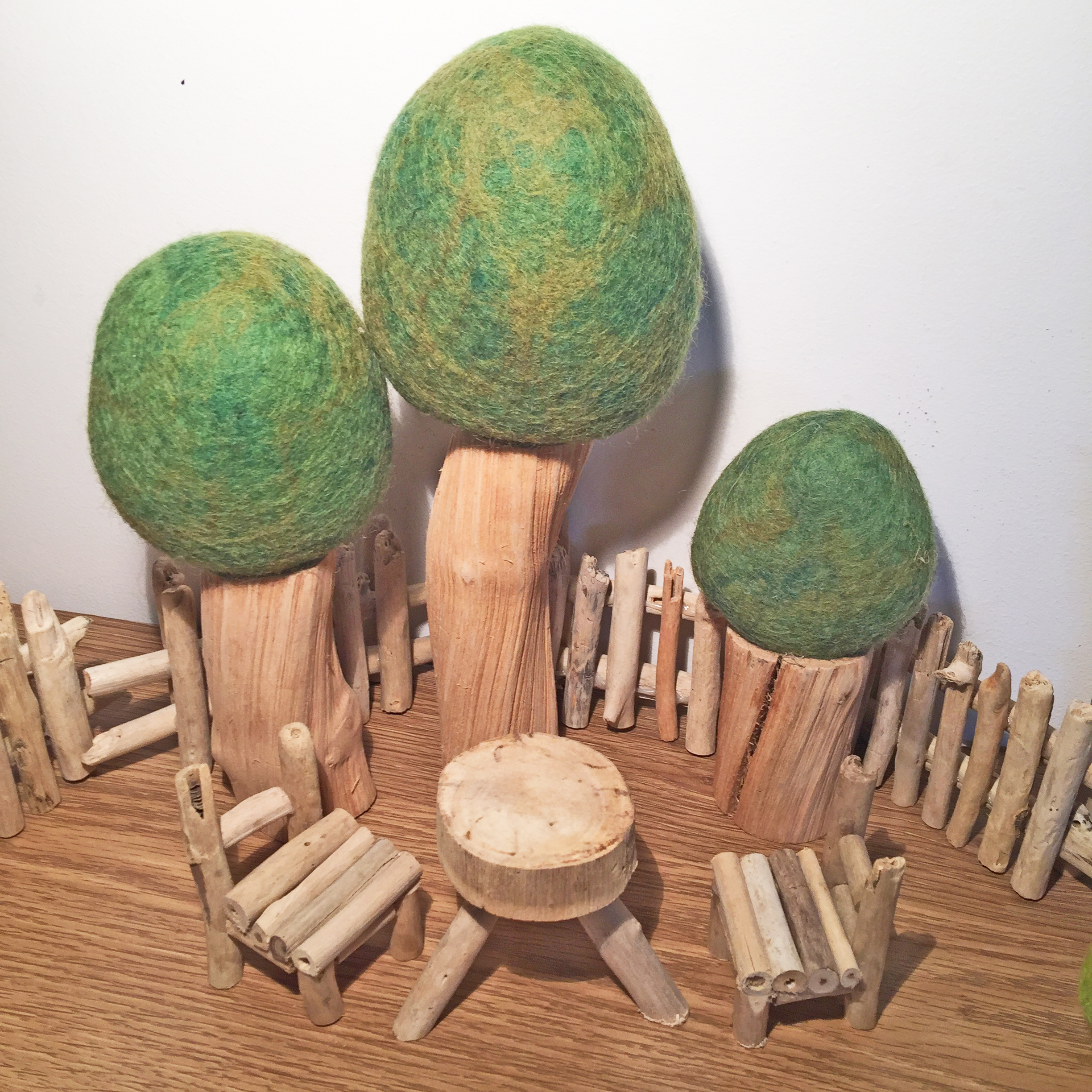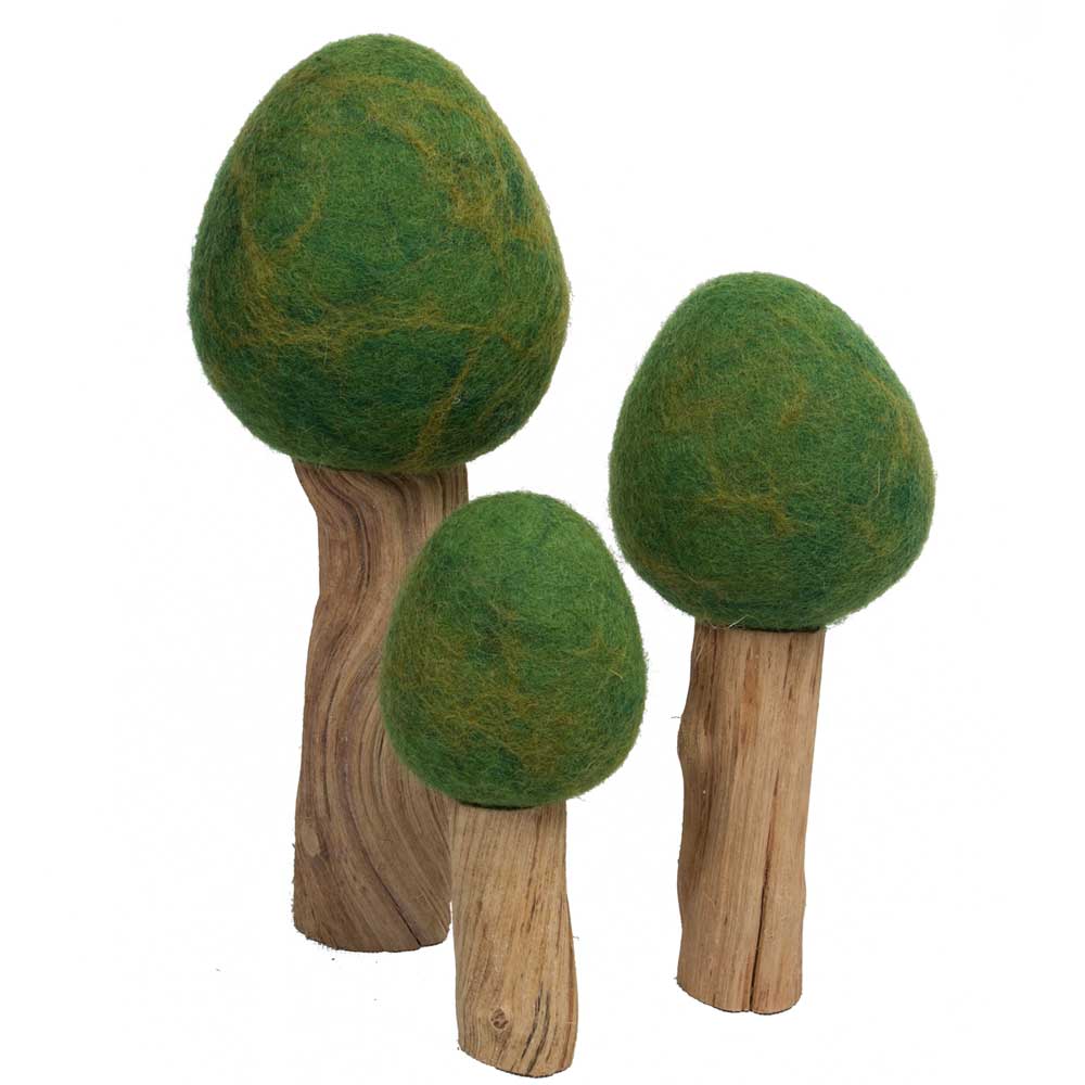These trees are beautiful & well made. The trunks are a natural wood, light weight & sturdy to handle & the wool felting is very soft & a beautiful colour. These are a must have for small world play, will definitely be getting all 4 seasons.