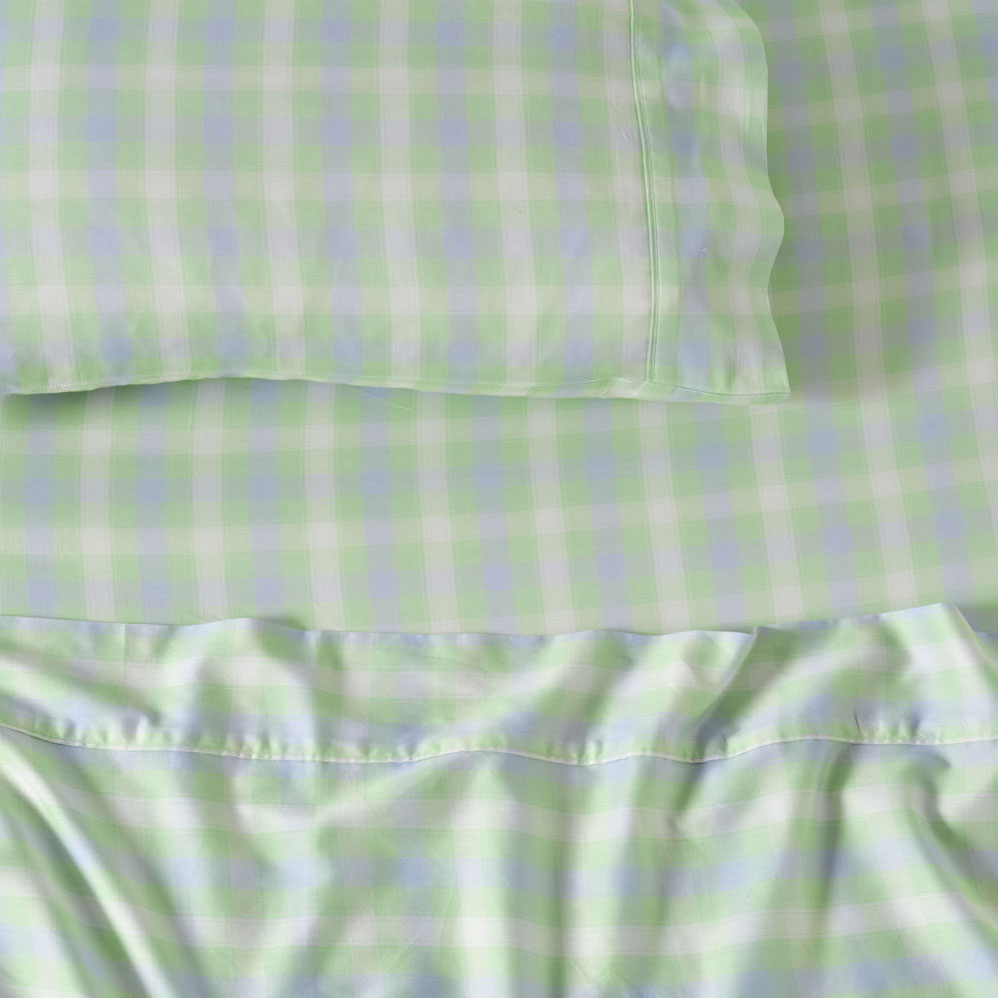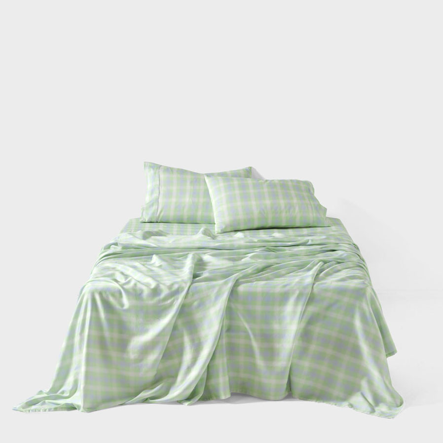 Bring fresh summer vibes to your bedroom with the Linen House Sunrise Check Clearwater Sheet Set. Crafted from luxe 250TC cotton sateen, this playful design combines sky‑blue and honeydew hues for a refreshing colour‑pop that delights both adults and teens. Complete with a 40cm fitted sheet, this durable and breathable set is perfect for warm nights and looks even more striking when styled with the matching quilt cover set. Sunrise Check Clearwater adds energy, comfort, and personality to every space.
