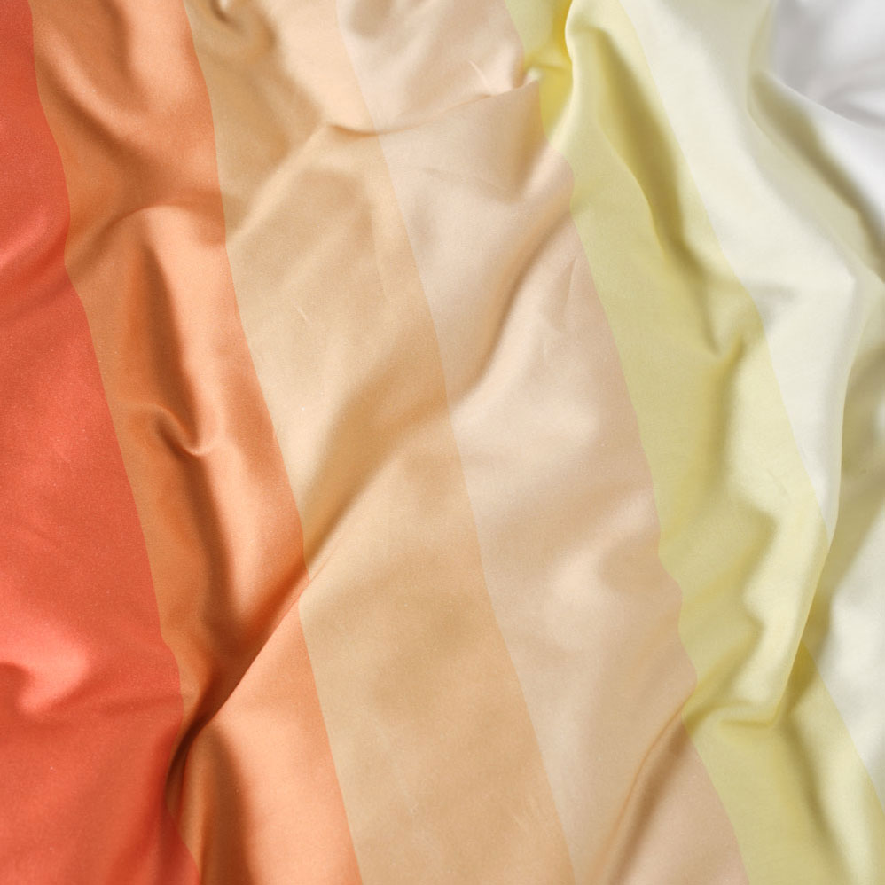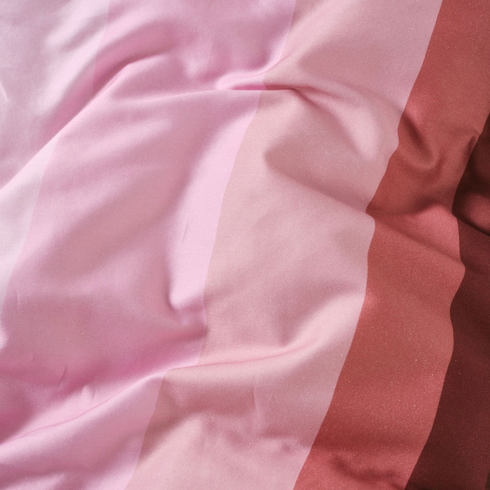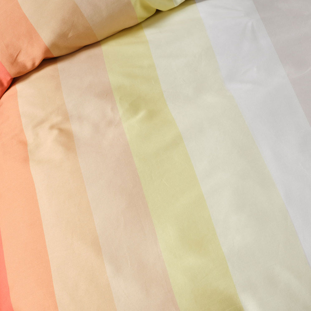 Turn your bedroom into a summer showcase with the Linen House Sunrise Stripe Bubblegum Quilt Cover Set. Crafted from luxe cotton sateen, this head‑turning design features a rainbow spectrum of stripes in dark orange, paler orange, yellow, pinks, and deep burgundy. Bold, warm hues create the ultimate colour‑pop for adults and teens alike, making Sunrise Stripe Bubblegum a vibrant choice for every space. Durable, breathable, and irresistibly stylish, this quilt cover set is perfect for summer and pairs beautifully with the matching sheet set.
