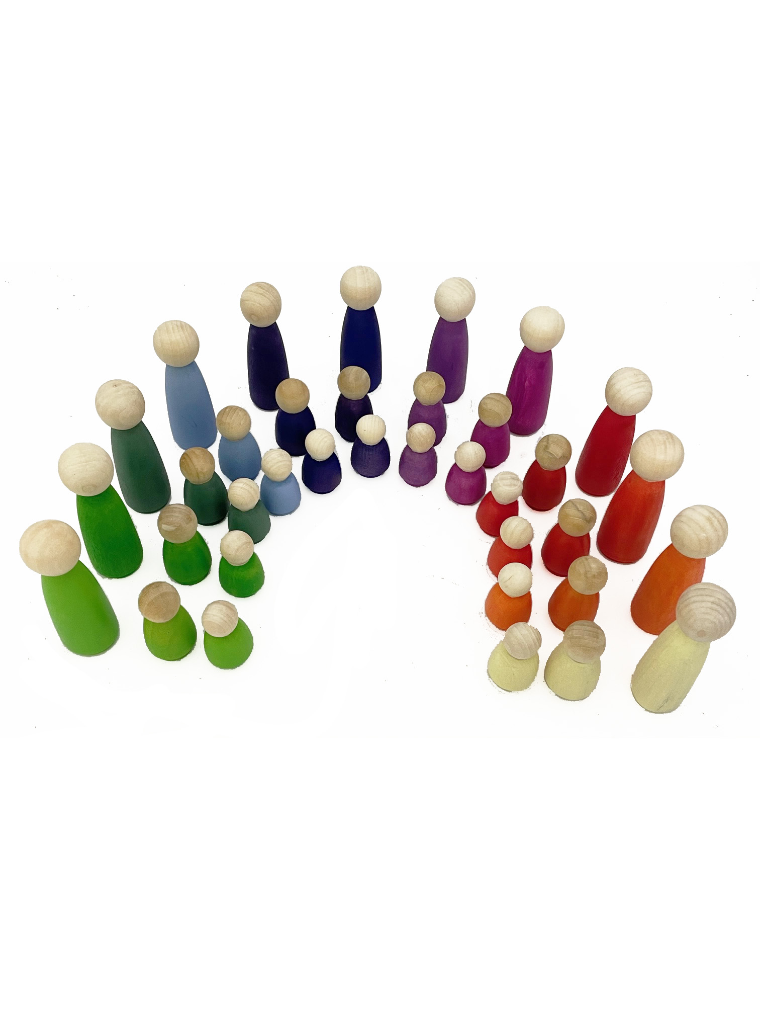 A vibrant set of handcrafted wooden peg people painted in the twelve Goethe colour wheel shades. Each figure is hand painted in Melbourne, making this a beautiful choice for families and educators seeking quality Australian made toys.